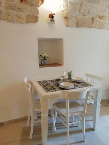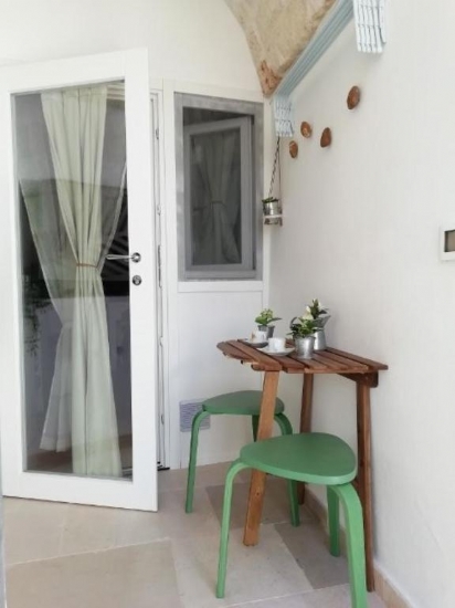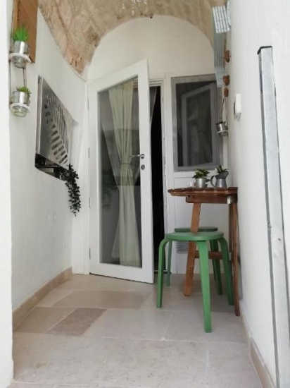 Inside, the house features a quiet and cozy bedroom, a fully equipped kitchen with refrigerator and microwave oven, and an elegant, functional bathroom. The stone vaults and original floors speak the language of a true Apulia, made of authenticity, light, and charm.