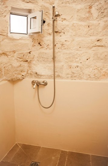 -Finishes in Trani natural stone, original Italian ceramics, and local stone