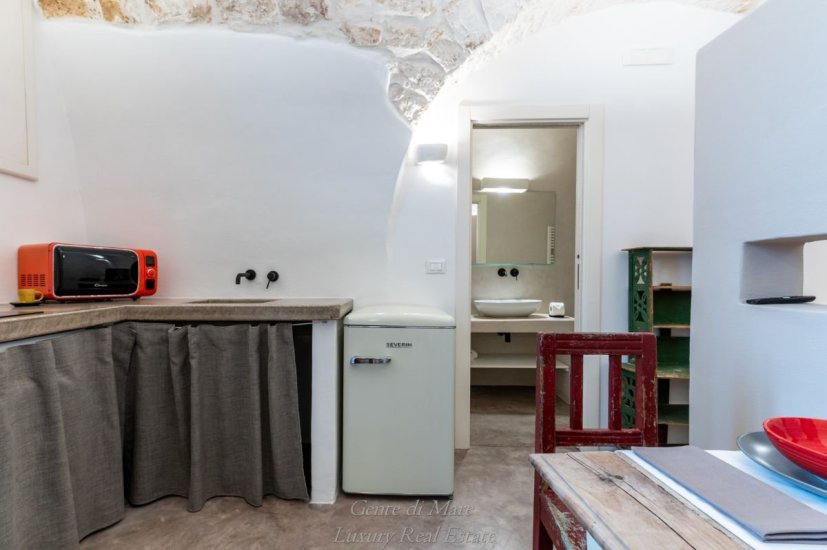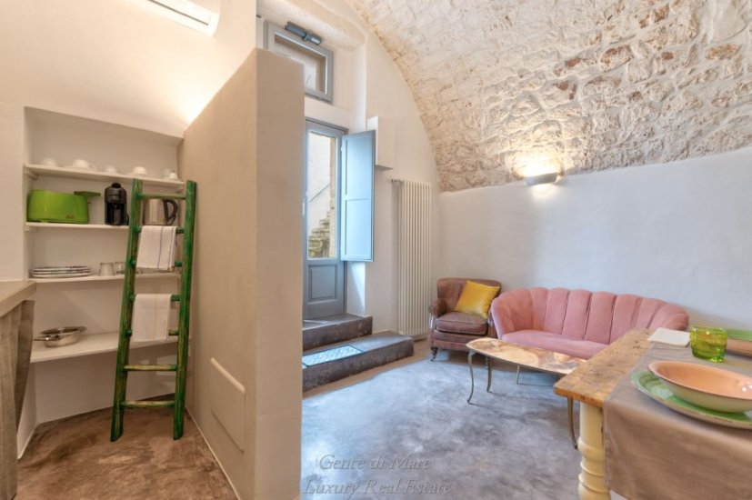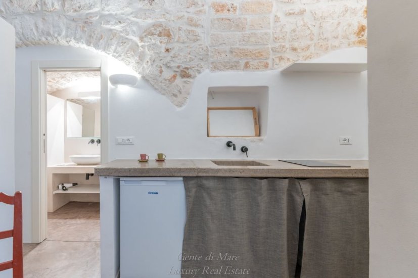 On the ground floor, with independent street-level access, there are two fully renovated lofts, perfectly integrated into the original architectural context. Each unit features one bedroom, a living area with kitchenette, a bathroom and a practical storage space. Original exposed stone walls, vaulted ceilings and local materials create an atmosphere that is authentic, elegant and timeless—ideal for high-end hospitality.