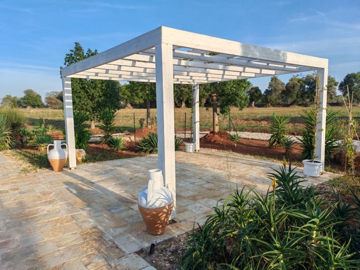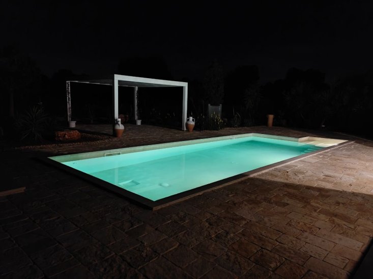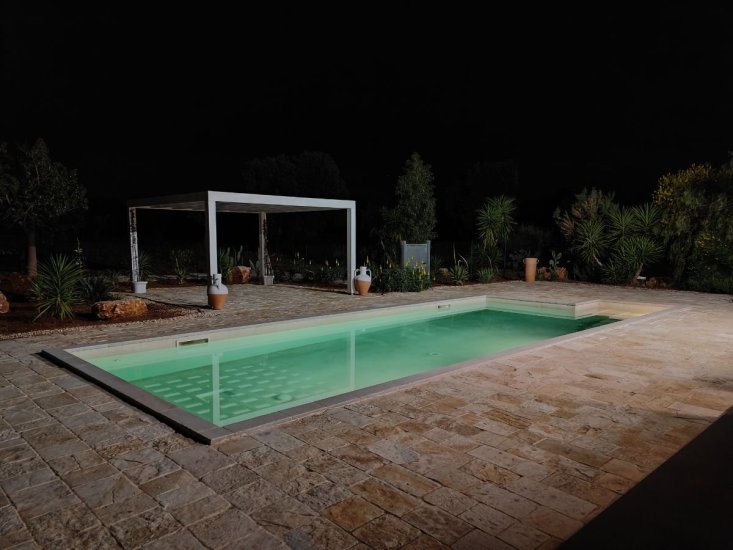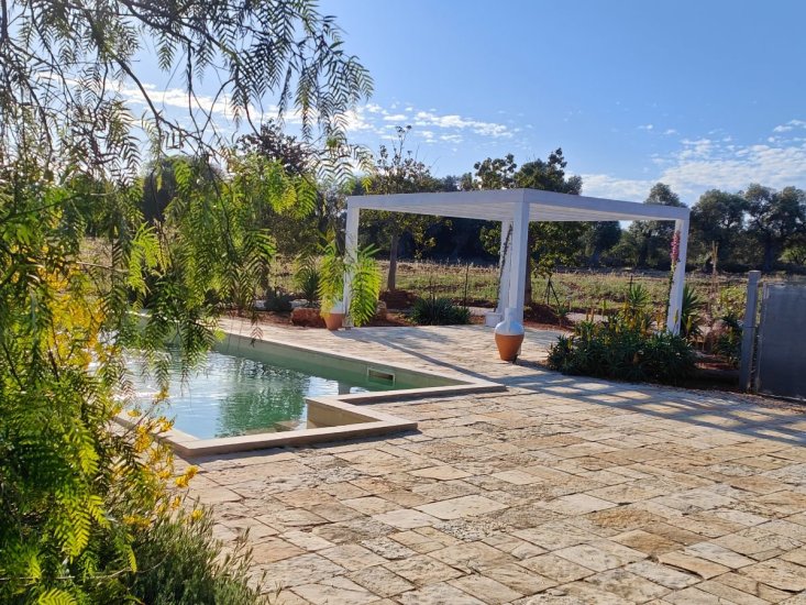 La dimora è circondata da un vasto terreno di circa un ettaro adorno di maestosi ulivi e macchia mediterranea, la splendida piscina, di 40mq (4x10m) attrezzata con doccia esterna, è il luogo ideale per rinfrescarsi dal sole italiano. Trascorrerai le giornate oziando sui lettini sparsi per la piscina. Vi è una splendida veranda d’entrata, già predisposta con impiantisca e ideale da chiudere con vetrate, e un bel gazebo esterno, entrambi offrono un posto meraviglioso per prendere sollievo dal sole. Qui potrai godere di numerosi pasti all'aperto, vivendo momenti di convivialità.