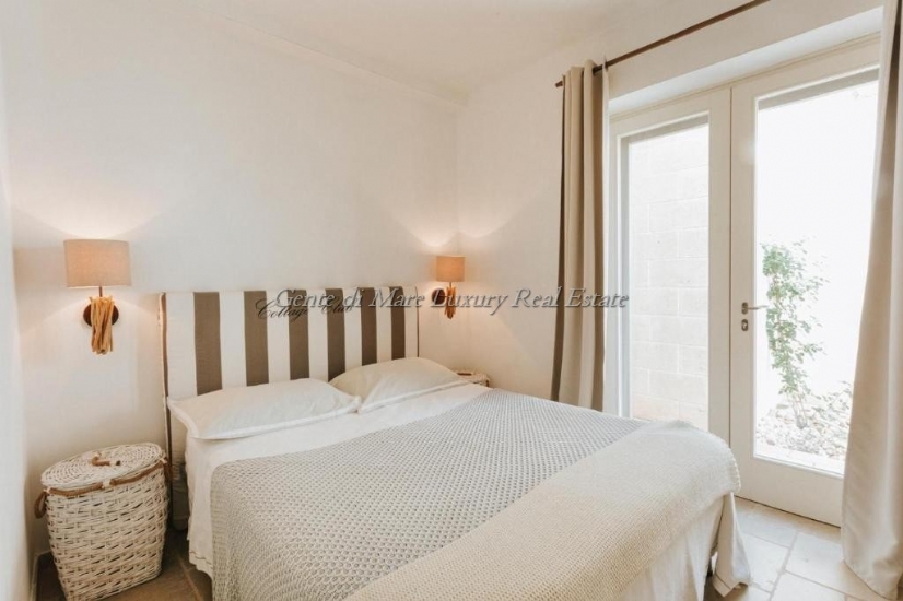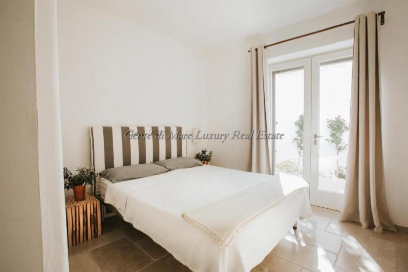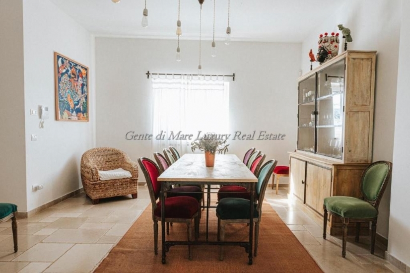 Distribuita su due livelli armoniosi, la villa accoglie i suoi ospiti in un’architettura elegante, dove la luce naturale diventa parte integrante del progetto. Gli interni sorprendono per la cura dei dettagli e la scelta di materiali pregiati: ogni ambiente è studiato per creare un dialogo continuo tra estetica e funzionalità, tra comfort contemporaneo e suggestioni locali. Gli arredi, selezionati con gusto sartoriale, donano carattere e unicità agli spazi, evocando atmosfere calde, rilassate ma assolutamente sofisticate.
