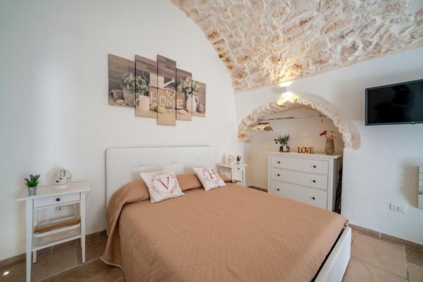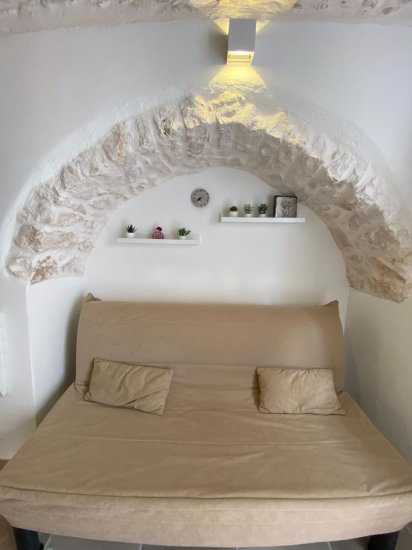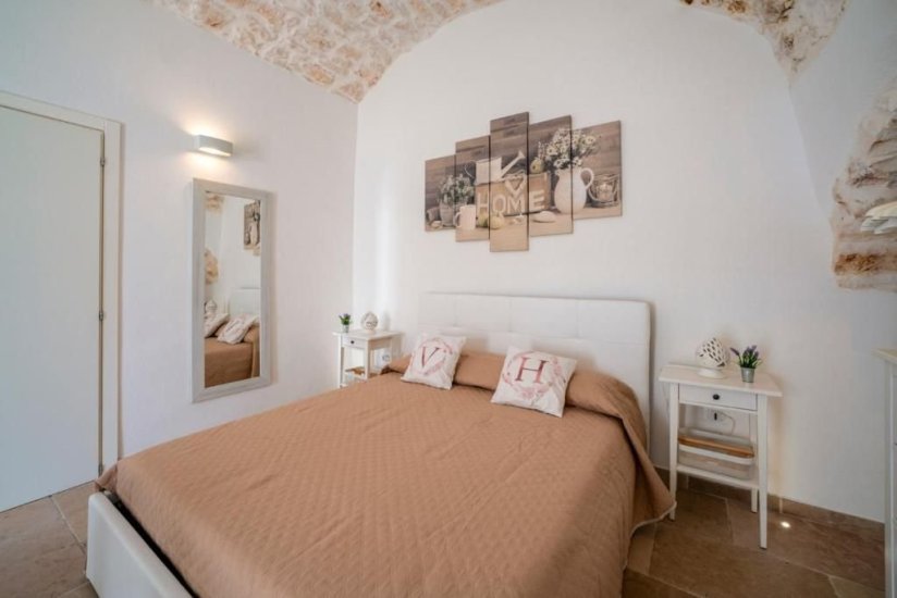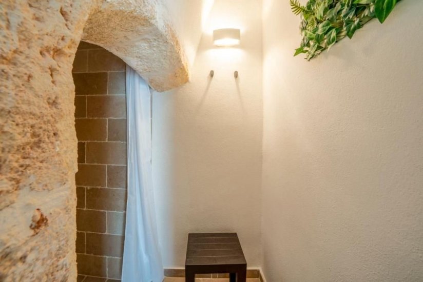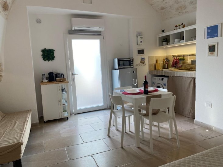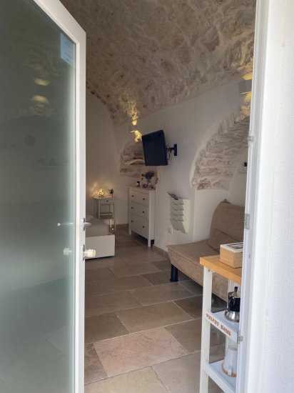 Varcando la soglia, si viene accolti da un’atmosfera calda e raccolta, dove la pietra viva delle pareti racconta storie antiche, mentre le scelte architettoniche moderne regalano comfort e funzionalità. Il monolocale è stato recentemente ristrutturato con eleganza sartoriale, e può ospitare comodamente due persone. Il vero protagonista è il bagno, ampio e luminoso, impreziosito da una doccia walk-in di design che evoca le spa di boutique hotel internazionali. L'angolo cottura, discreto ma perfettamente attrezzato, permette di vivere la casa anche nel quotidiano, con la possibilità di cucinare e accogliere con gusto. A completare la dotazione: Wi-Fi veloce, lavatrice e tutti i comfort essenziali per una vita rilassata e senza pensieri.