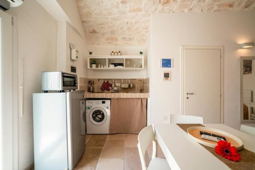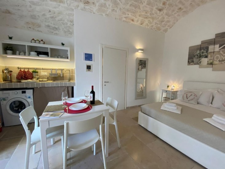 Nel cuore della zona ottocentesca di Ostuni, a pochi passi dalla sua iconica città vecchia e dai suoi vicoli imbiancati a calce, si apre il portale discreto di Dimora Antica Ostuni — un raffinato monolocale in pietra, dove passato e presente si intrecciano in perfetto equilibrio. In questo angolo intimo e senza tempo, ogni dettaglio è stato curato per offrire un’esperienza abitativa dal sapore autentico e contemporaneo.