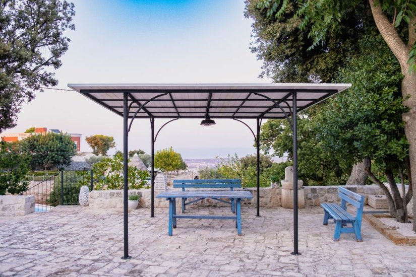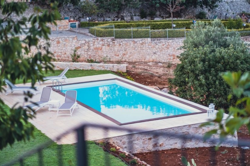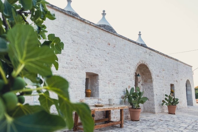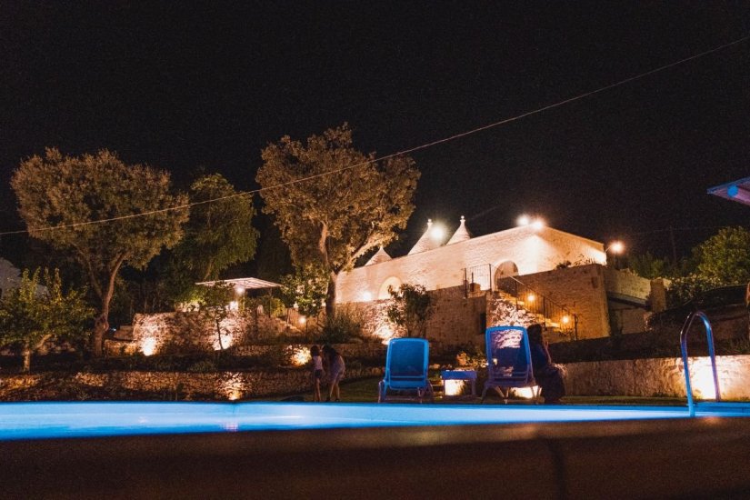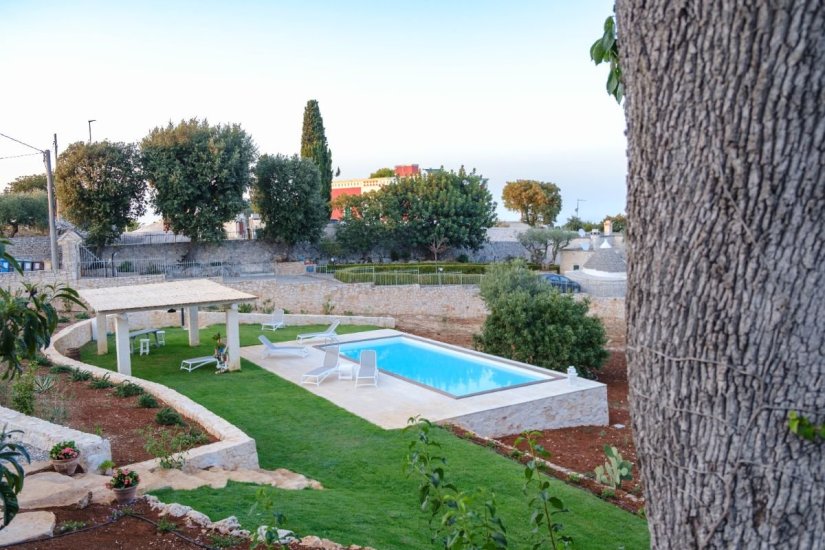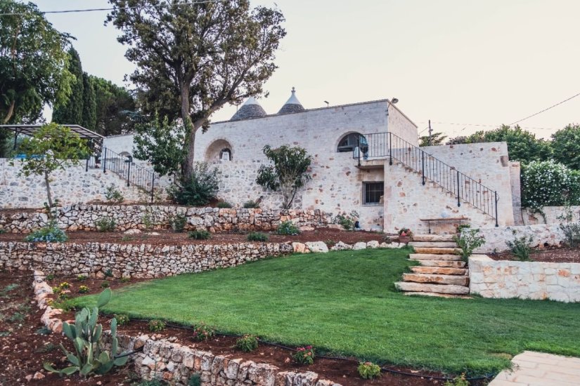 Questa residenza incanta per il suo equilibrio perfetto tra natura e design: trulli autentici, una raffinata lamia in pietra viva, ed elementi architettonici contemporanei si fondono in un progetto unico, completato nel 2020 dopo un intervento di ristrutturazione integrale, curato con sensibilità estetica e visione tecnologica.