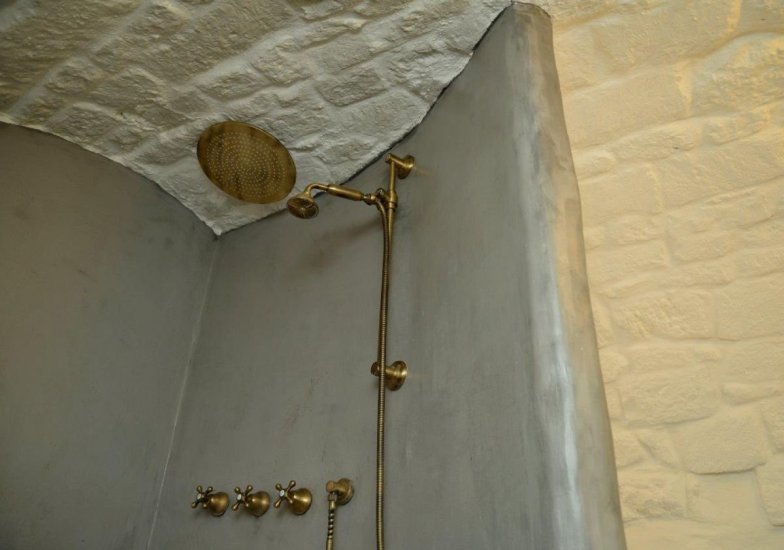La prima residenza è un sofisticato rifugio su due livelli: 24 mq di essenza ostunese distribuiti con maestria tra piano terra e piano superiore, collegati da una sinuosa scala a chiocciola. Al livello inferiore, un letto alla francese incastonato nella pietra, una libreria discreta, un angolo cottura funzionale e un armadio-nicchia. Al piano superiore, un ampio bagno scenografico, con doccia doppia e cascata cervicale: un inaspettato tocco di spa privata, nascosto nel cuore del borgo antico.