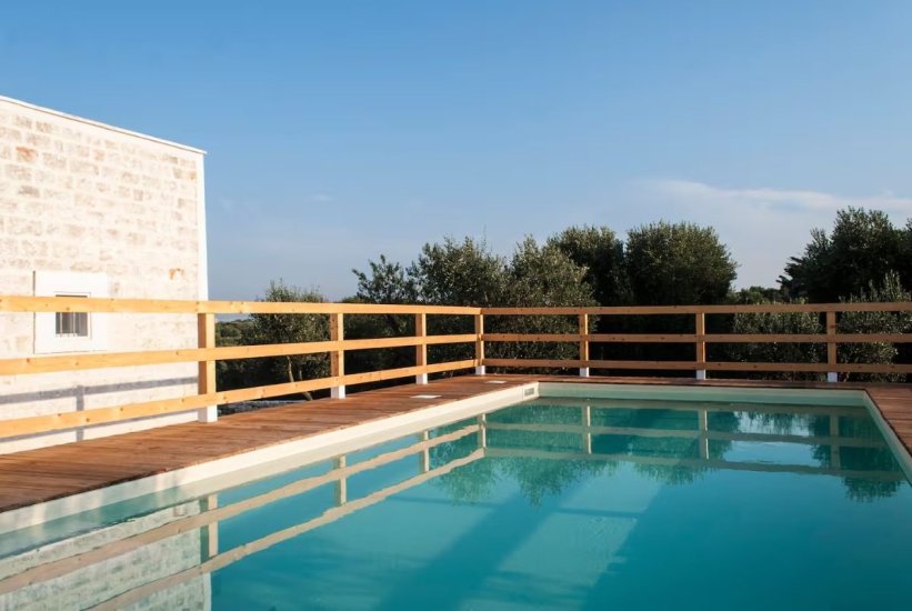Completamente restaurata con artigianalità e sensibilità estetica, la residenza unisce trulli e lamie originali valorizzati da volte maestose, soffitti a cielo di carrozza e pietra viva che riflette la luce dorata del Sud. Gli interni, circa 120 mq distribuiti con armonia, rivelano una zona giorno ampia e luminosa che si estende verso un pergolato naturale, perfetto per pranzi d’estate e colazioni lente. Due camere da letto intime e raffinate, un bagno dal carattere essenziale, ambienti di servizio e depositi perfettamente integrati definiscono un’architettura pensata per un vivere disinvolto, accogliente, autentico. Una piscina fuori terra, elegante nel suo inserimento paesaggistico, completa l’atmosfera sospesa tra comfort e natura incontaminata.