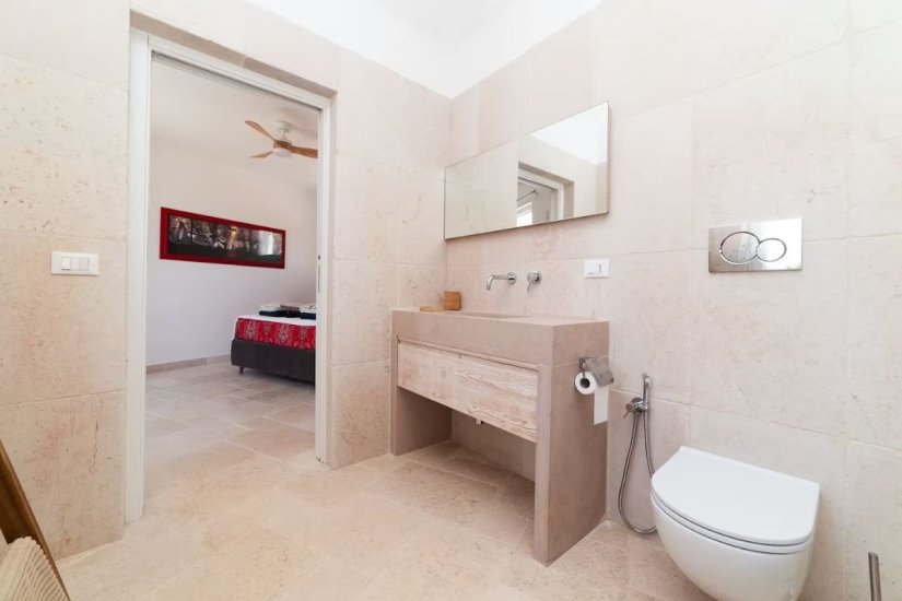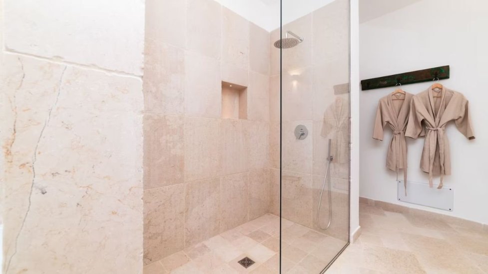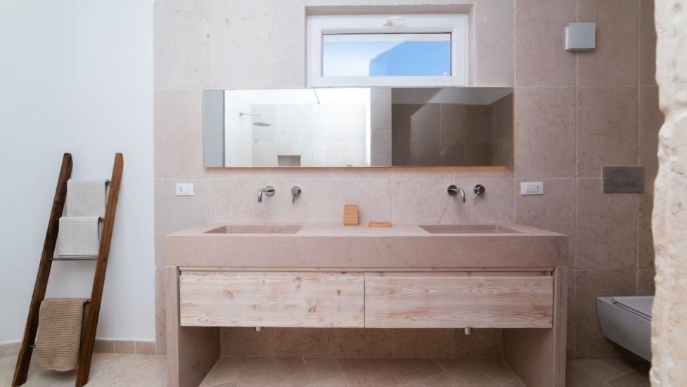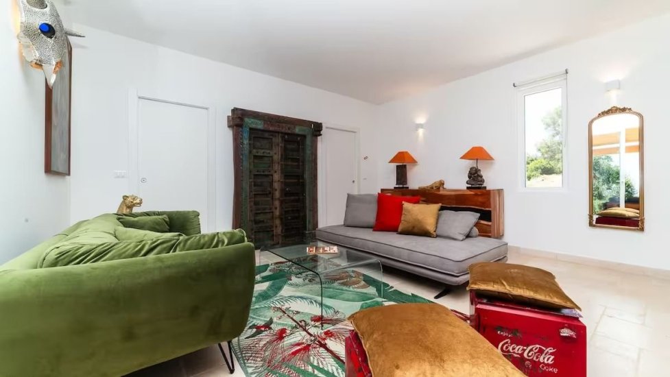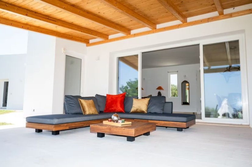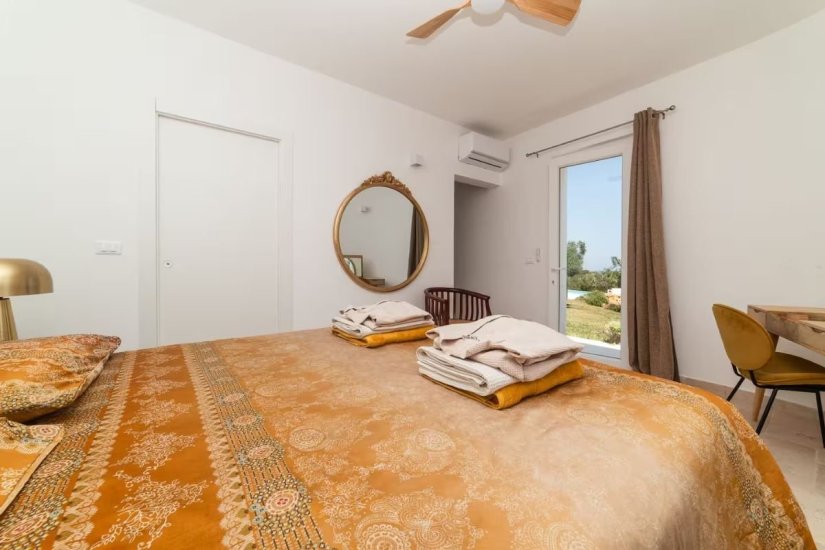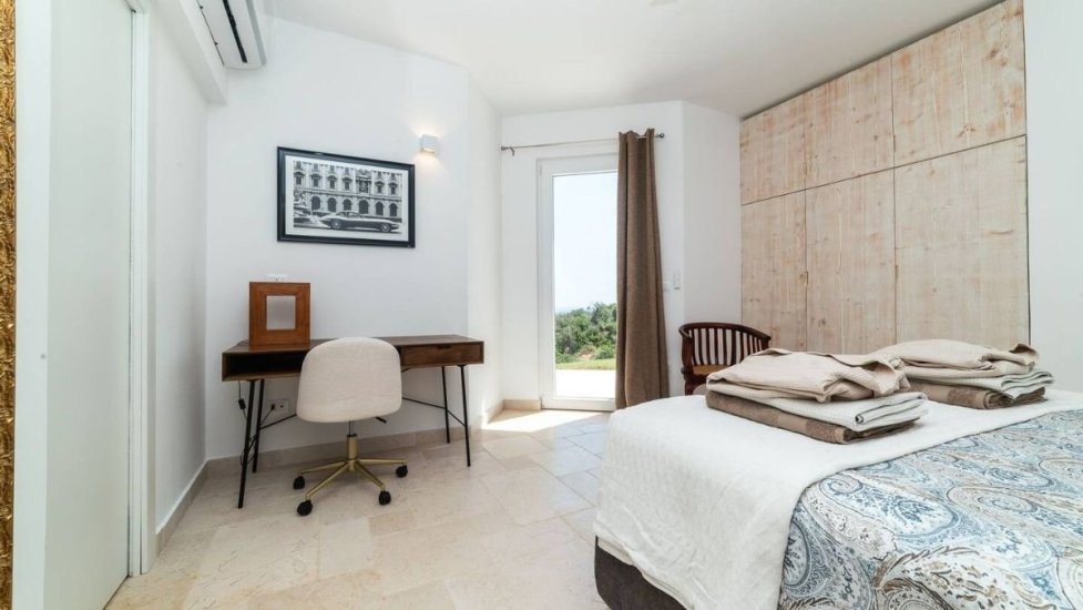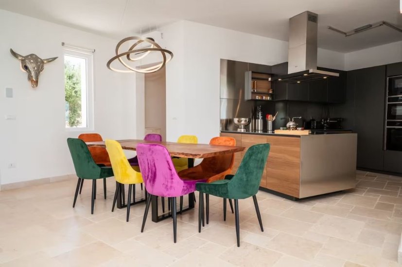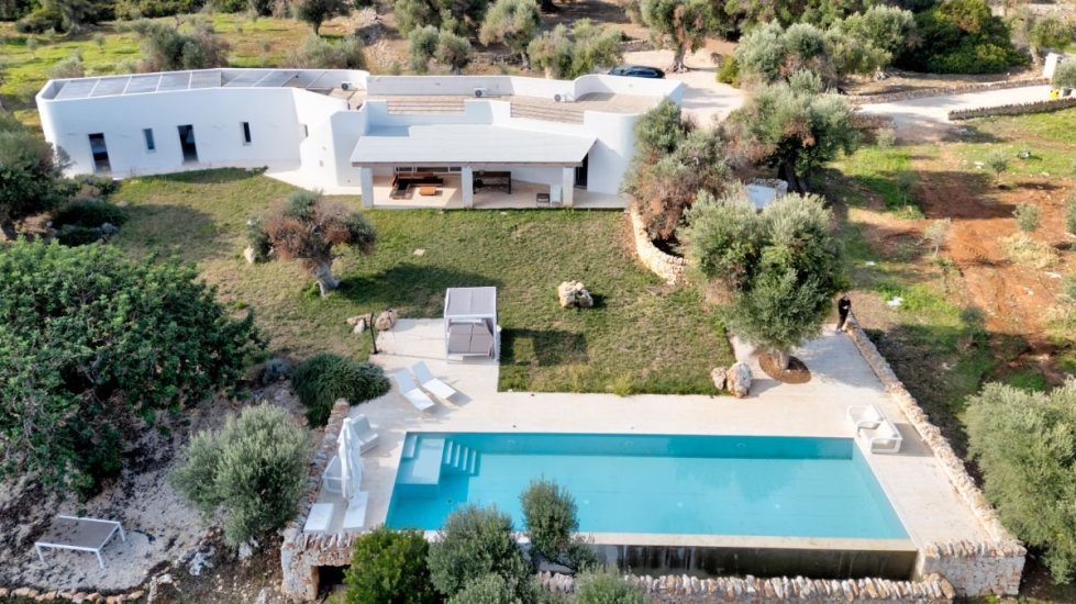 L’architettura moderna, essenziale e perfettamente integrata nel paesaggio, abbraccia un living ampio e luminoso che si apre verso la campagna e il mare, con cucina di design e spazi concepiti per accogliere e sorprendere. La zona notte ospita quattro raffinate camere da letto, ognuna dotata del proprio bagno en suite, per un totale di quattro bagni, garantendo privacy e armonia anche agli ospiti più esigenti. Ogni ambiente è avvolto da materiali naturali, grandi aperture vetrate e dettagli studiati per esaltare la luce mediterranea.