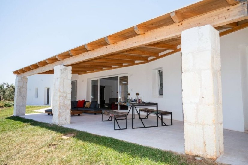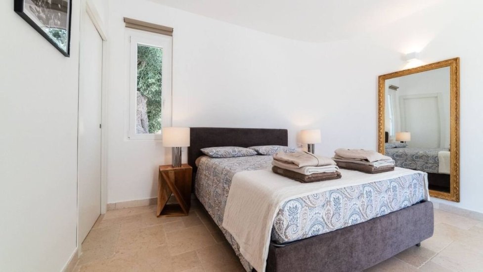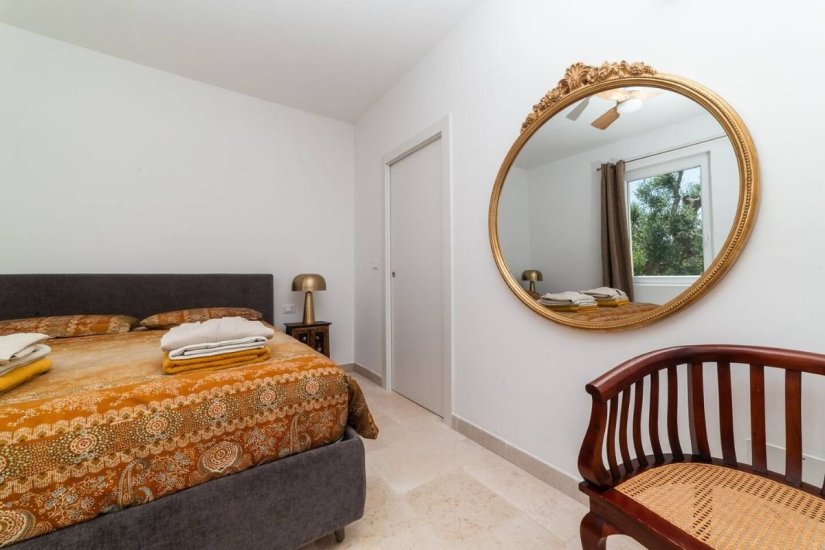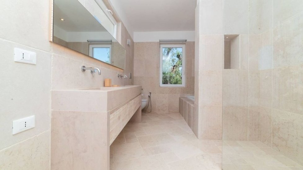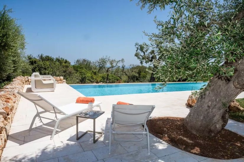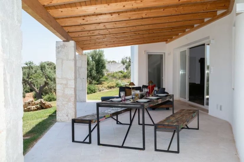 Esternamente, la villa offre un’oasi privata di grande fascino: una piscina che sembra fondersi con il blu dell’orizzonte, una veranda elegante e attrezzata dove pranzare e cenare immersi nel profumo degli ulivi, e vaste aree verdi che raccontano la storia antica del territorio. Qui il tempo rallenta, trasformando ogni momento in un’esperienza sensoriale.