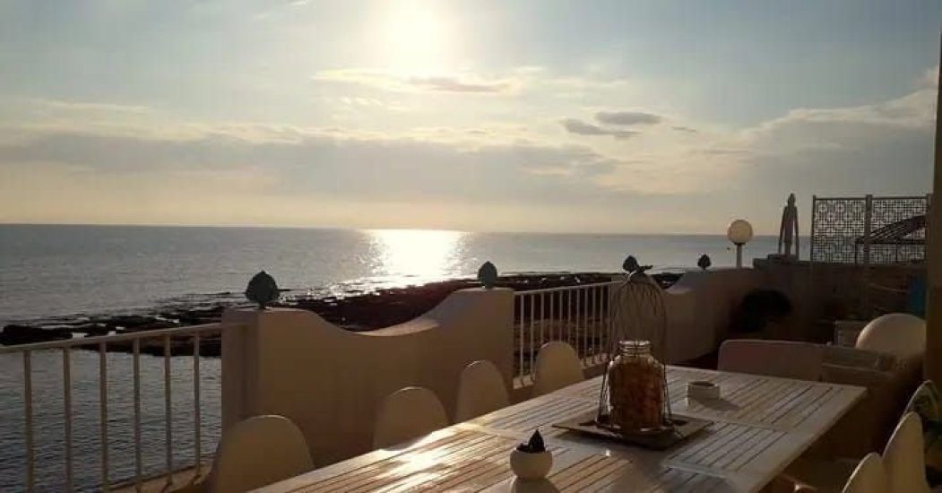 All’esterno, il paesaggio diventa architettura. La terrazza si apre come una platea privata sul mare, con un’elegante area dining fronte acqua, perfetta per colazioni sospese nel silenzio e cene illuminate dai tramonti rosati della Puglia. Da qui, un cancello esclusivo conduce direttamente agli scogli, permettendo un accesso privilegiato e unico al mare.