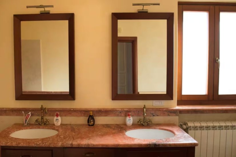 -La villa è ristrutturata con materiali pregiati e dettagli tradizionali.