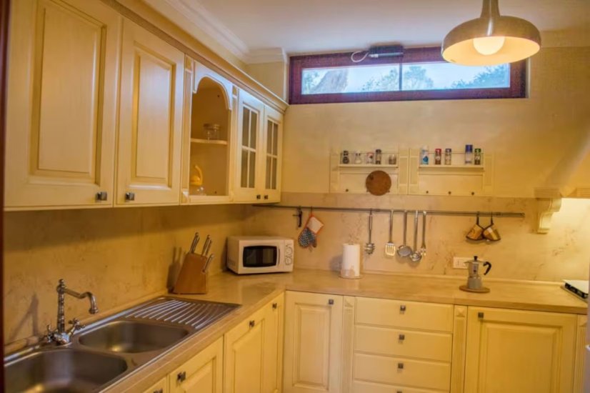 -Il piano terra ospita zona giorno con cucina e accesso alla veranda e piscina.