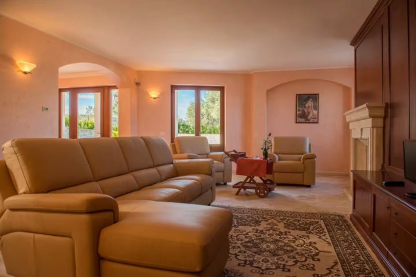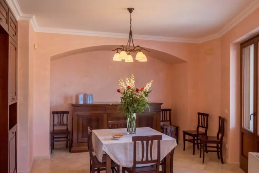 La residenza si sviluppa su una superficie interna di circa 225 mq, distribuiti su due livelli, e si adagia su un maestoso terreno di 8.500 mq che abbraccia lo sguardo con un verde perfetto e autentico: prato inglese, vegetazione ornamentale e ben quarant’ulivi secolari, custodi antichi del silenzio mediterraneo. Accanto, un frutteto rigoglioso amplifica la sensazione di vivere in un luogo sospeso tra natura e arte.