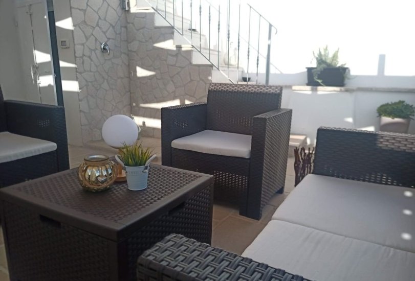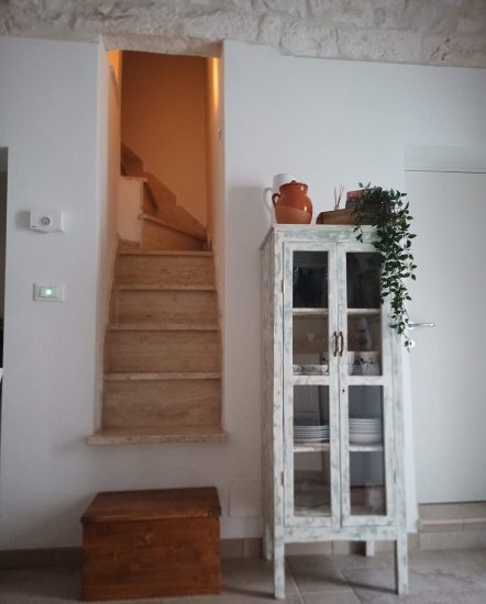 Al primo piano, la zona giorno accoglie con una cucina integrata e un balcone panoramico che regala scorci unici sulla città Bianca, completata da un bagno elegante e da una camera da letto dal fascino intimo e raffinato. Salendo al secondo piano, una seconda camera da letto conduce direttamente alla terrazza su due livelli, uno spazio spettacolare perfetto per cene all’aperto, momenti di relax o eventi esclusivi con vista sui tetti bianchi di Ostuni.