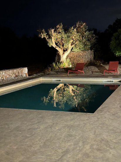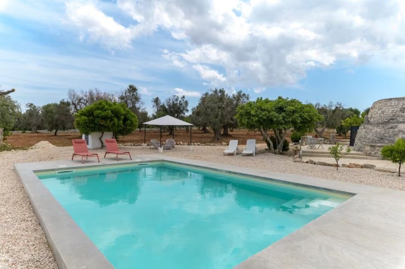 Gli spazi esterni sono il cuore pulsante della proprietà. Un giardino privato circondato da ulivi secolari abbraccia una splendida piscina privata, attrezzata con sdraio e gazebo, creando un’oasi esclusiva dove rilassarsi nelle ore più calde o godersi la quiete delle serate estive sotto il cielo stellato di Puglia. Il terreno di circa 17.000 mq garantisce massima riservatezza e apre a ulteriori possibilità di valorizzazione.