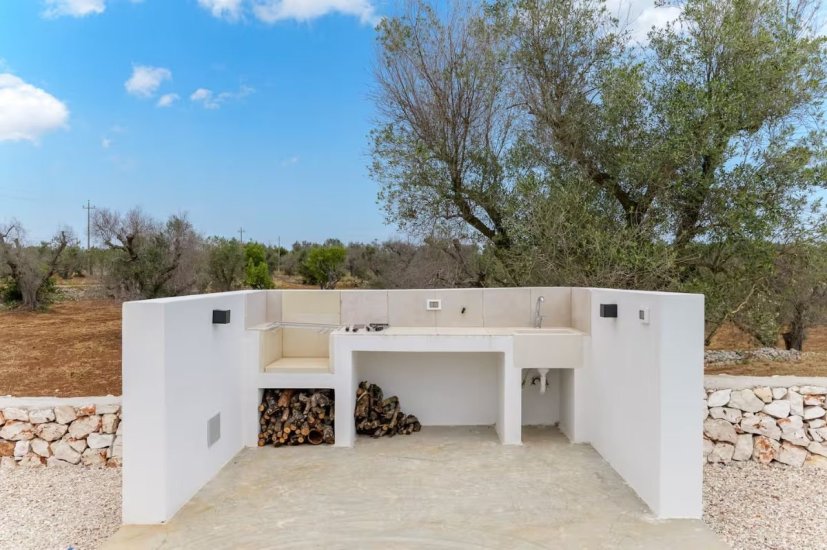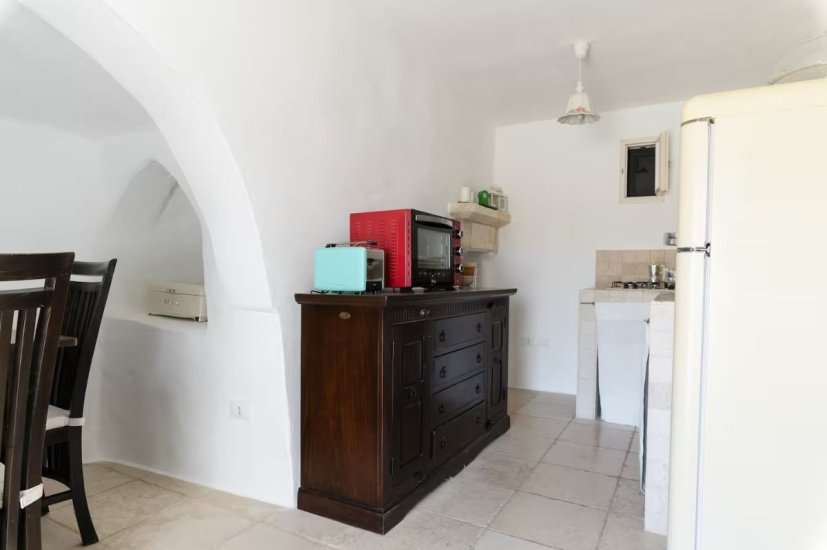 La proprietà si compone anche di un trullo autentico, elemento iconico e di grande valore architettonico, che ospita una seconda camera da letto. A servizio del trullo è presente un bagno esterno, soluzione ideale per garantire privacy e comfort agli ospiti, rendendo la proprietà perfetta anche per un utilizzo ricettivo di alto livello.