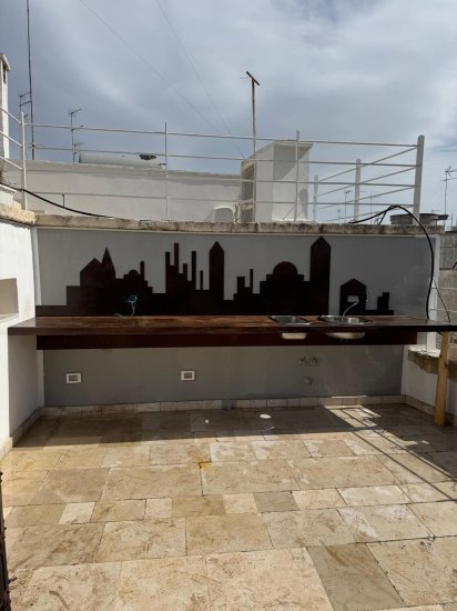 Il vero capolavoro si svela in cima: una terrazza scenografica su tre livelli, un autentico salotto a cielo aperto che regala una vista mare mozzafiato e un affaccio unico sui tetti e sulle cupole di Ostuni. Qui trova spazio una seconda camera da letto con terzo bagno, perfetta come suite indipendente, oltre a una cucina esterna ideale per colazioni panoramiche, cene al tramonto e momenti di pura contemplazione. La luce, il vento e l’orizzonte diventano parte integrante della casa.