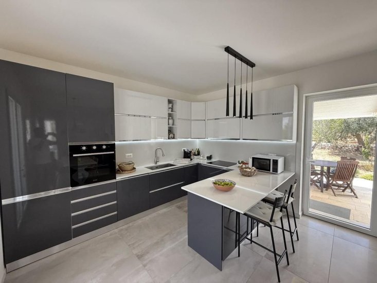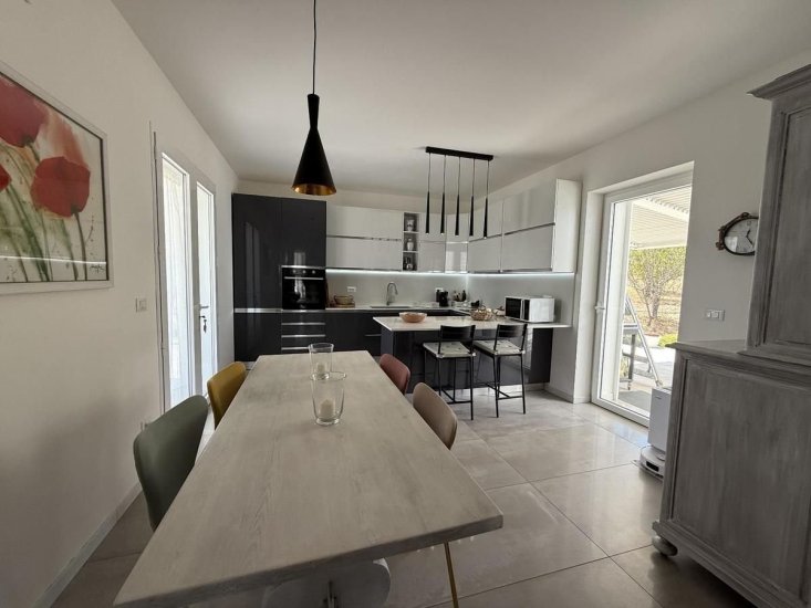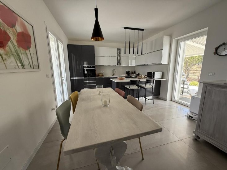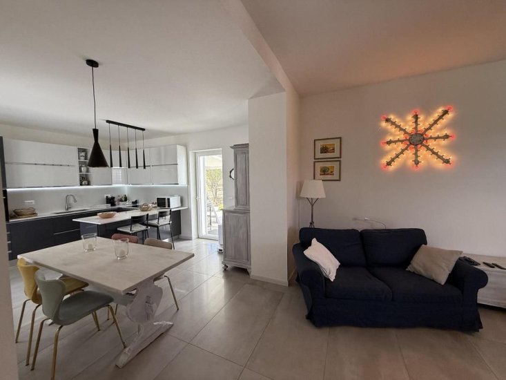 -Unità principale di nuova costruzione con soggiorno luminoso, stufa a pellet e cucina attrezzata con accesso a veranda e pergolato