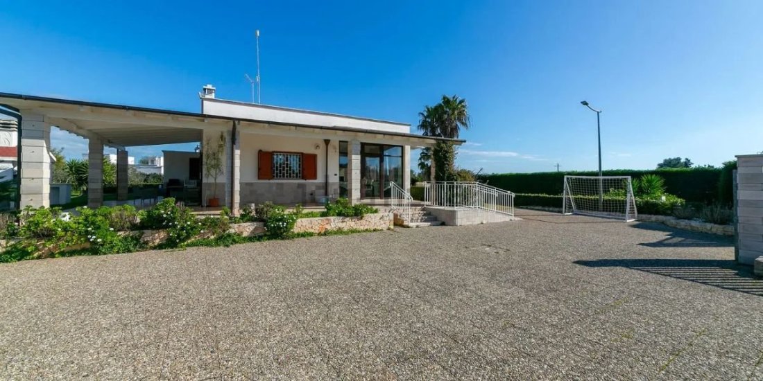 All’interno, la villa coniuga eleganza e funzionalità: un ampio salone con cucina, tre camere da letto, un bagno e una lavanderia. La residenza è dotata di aria condizionata caldo/freddo, riscaldamento GPL con bombolone interrato, impianto fotovoltaico da 8 kW con batteria da 15 kW e sistema di backup, impianto di allarme collegato alla vigilanza, impianto di depurazione professionale, pozzo artesiano, cisterna e fossa Imhoff, assicurando massima indipendenza e comfort.