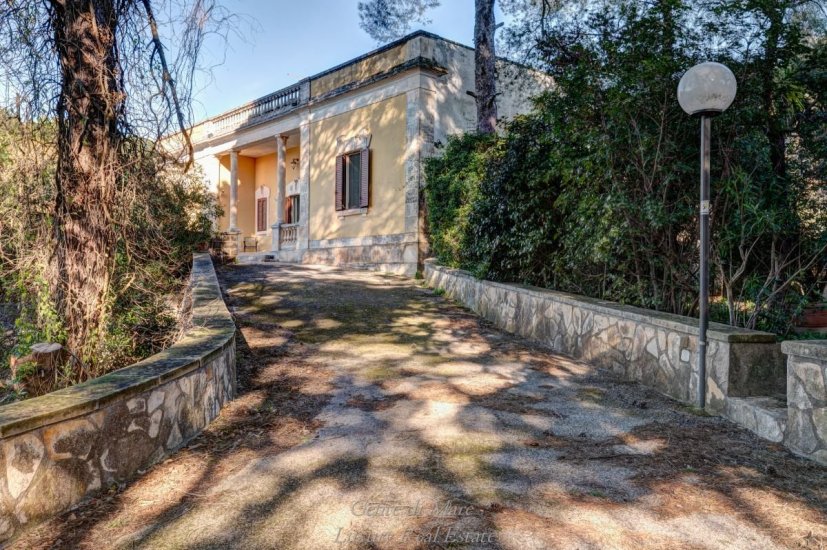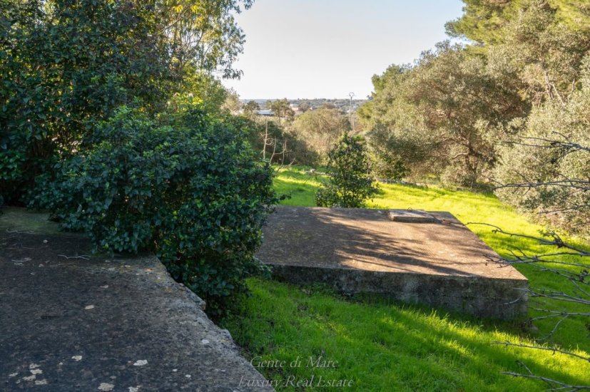 La villa è circondata da circa 13.000 mq di terreno privato impreziosito da una suggestiva pineta, che garantisce privacy, ombra naturale e un’atmosfera autenticamente mediterranea. Il piazzale d’ingresso introduce alla proprietà, che conserva intatto il fascino delle antiche ville di campagna.