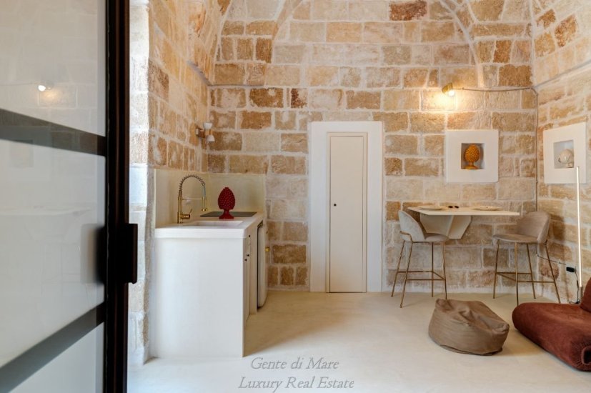 Nel centro storico di Carovigno, tra vicoli bianchi e scorci autentici, sorge Casa Perla Salentina, un elegante palazzotto in pietra recentemente ristrutturato nel pieno rispetto dell’architettura locale. Volte a stella, pietra a vista e tonalità naturali creano un’atmosfera sofisticata e senza tempo.