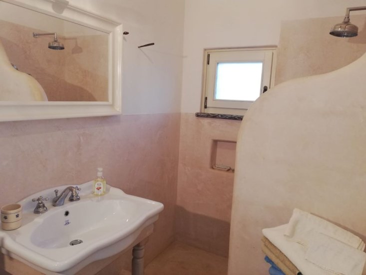 Al piano superiore, rifinito in parquet, la zona notte si sviluppa con quattro camere matrimoniali con bagno en-suite, un’elegante area lettura affacciata sull’antica aia e una suite con vista sui coni del trullo. Completa il piano una master bedroom con cabina armadio e bagno privato, pensata come uno spazio intimo e sofisticato.