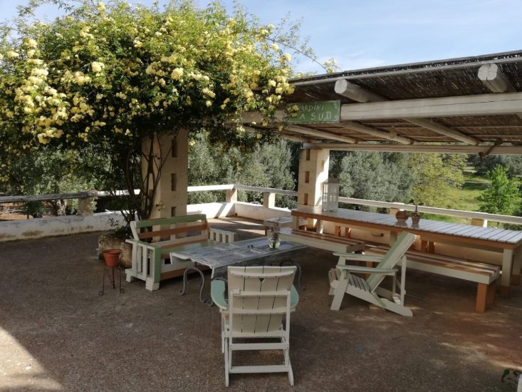 GLI ESTERNI: Circondata da muretti a secco e immersa in un terreno ricco di biodiversità con oltre 200 alberi tra ulivi, querce, lecci e alberi da frutto, la proprietà offre scenari di assoluta bellezza.