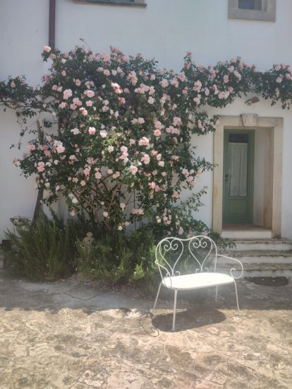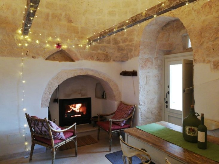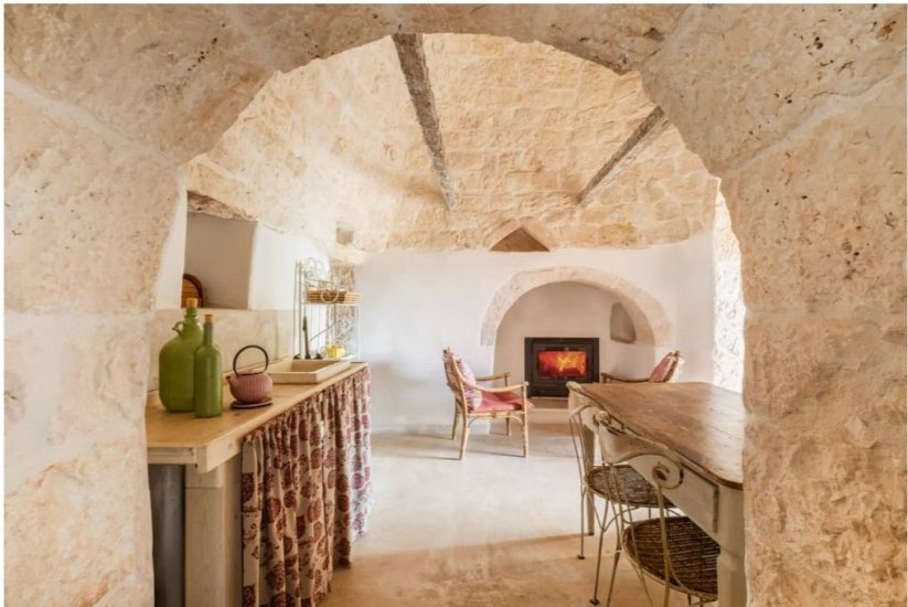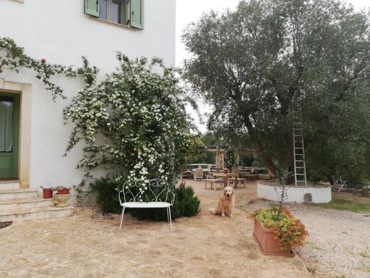 Un trullo a cinque coni e una lamia del XVIII secolo affiancano la residenza principale, creando un insieme architettonico autentico e di grande fascino.