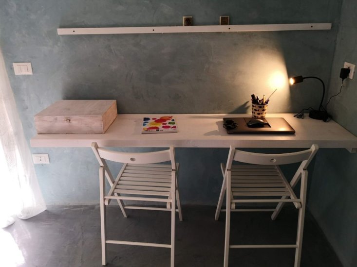GLI INTERNI: Gli ambienti, rifiniti in biointonaco naturale, esprimono uno stile elegante e armonioso. La zona living ospita una cucina-soggiorno con divano letto e stufa a pellet, mentre la camera-studio con cabina armadio garantisce versatilità. Il bagno, curato nei dettagli, presenta una doccia in tadelakt. Completa la proprietà un locale tecnico esterno con servizi e lavanderia.