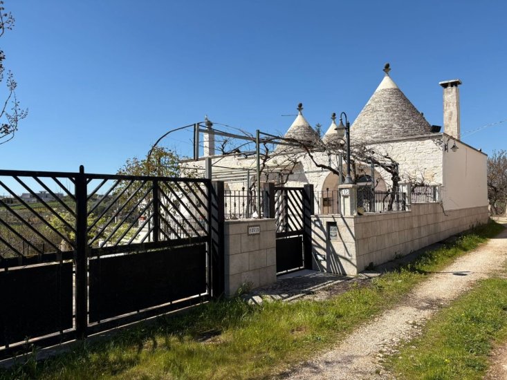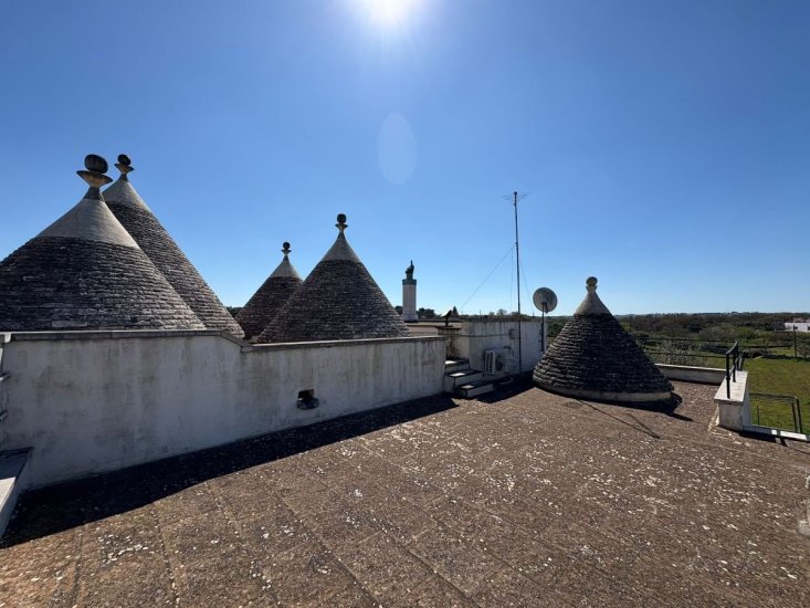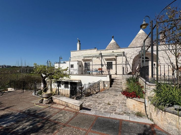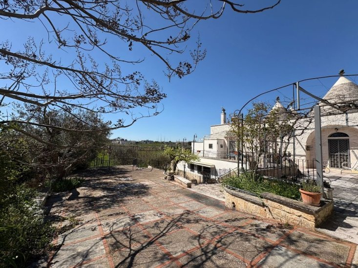GLI ESTERNI: Circondato da circa 1700 mq di terreno, il trullo offre un ampio piazzale terrazzato, arricchito da gazebi in ferro, illuminazione esterna e verde curato. Presenti inoltre zona parcheggio, terrazza abitabile e doppio accesso carrabile e pedonale.