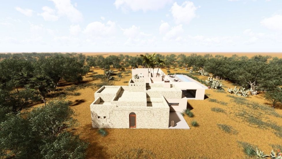 GLI ESTERNI: Immersa in 20.000 mq di terreno privato tra ulivi e macchia mediterranea, la proprietà offre una dimensione autentica e riservata. La casa è arricchita da una veranda in cannucciato, cucina esterna e doccia outdoor. Il progetto di ampliamento include una grande veranda con living esterno e una piscina privata, per un’esperienza abitativa all’insegna del relax.
