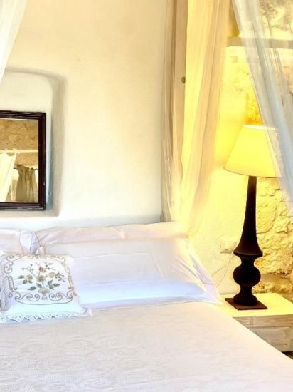 GLI INTERNI: L’anima della tenuta si racconta attraverso due volti distinti e armoniosamente integrati. La parte storica, sapientemente restaurata, custodisce tre camere con suggestive volte in pietra e tre bagni anch’essi rifiniti in pietra, ognuna con ingresso indipendente dal giardino, offrendo privacy e autenticità in ogni dettaglio.