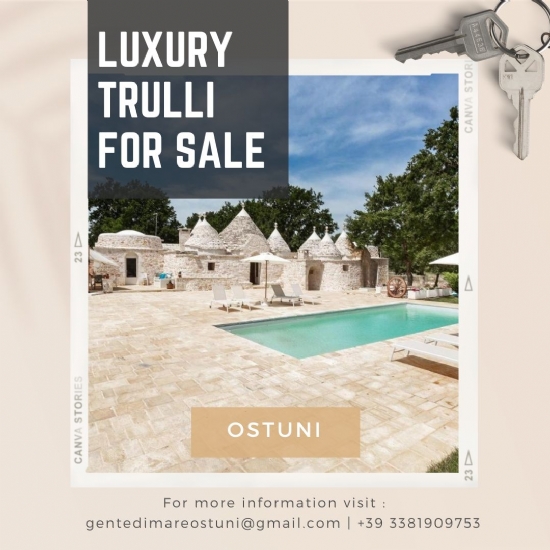 If you would like to sell or buy your luxury property please do not hesitate to contact us, we will be with you every step of the way. Just call us on +39 3381909753 or write to us at gentedimareostuni@gmail.com . To keep up to date with all our news check our website www.immobiliareostuni.com and follow us on our Facebook, Instagram and Youtube channels.
