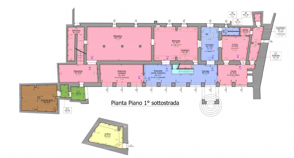 The imposing structure is on three levels: the basement, accessed from the garden, houses the two restaurant rooms, the kitchen, a reception area, the cellar, a bar and storerooms. On the ground floor, in addition to the owners' living quarters of about 53 square metres, you will find the seven hotel rooms, all with en suite bathroom, furnished with period furniture. Along the corridor there are several lounges and reading or relaxation areas, one of which has a fireplace. Finally, on the first floor is a further flat with four bedrooms, two bathrooms, a kitchen and spacious living room with fireplace.