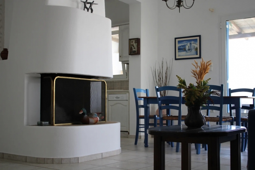 A lovely garden area, perfect for relaxing outdoors and enjoying the scenic beauty of Mykonos, surrounds this fantastic villa while a barbecue area and wood-burning oven is the ideal place for excellent al fresco dining and convivial moments with friends and family.