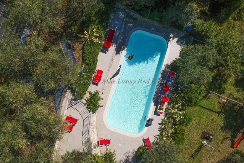 Set within a private park of approximately 9,500 sqm, the property offers a truly extraordinary setting. The 11x4 meter pool, located in the upper part of the park, is surrounded by a well-equipped sunbathing area, ideal for relaxing while admiring the panoramic views. The entrance pathway, framed by centuries-old trees, leads to a large parking area that can comfortably accommodate up to six vehicles. Every corner of the outdoor space invites you to experience the harmony between man and nature.