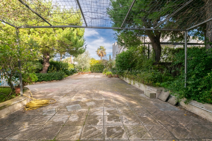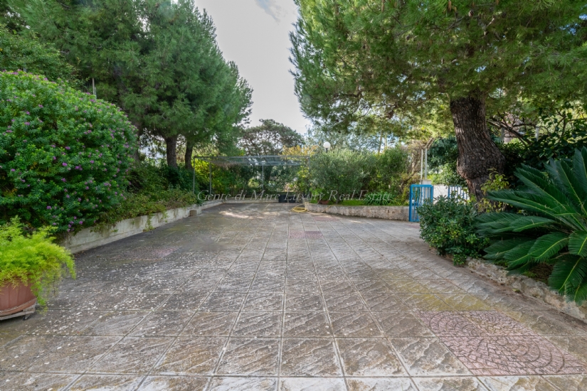 From the garden, through a French window in the master bedroom, there is access to a balcony at the back, equipped with an outdoor shower and a compartment for a washing machine. The square in front of the villa has a comfortable gazebo where cars can be parked safely.