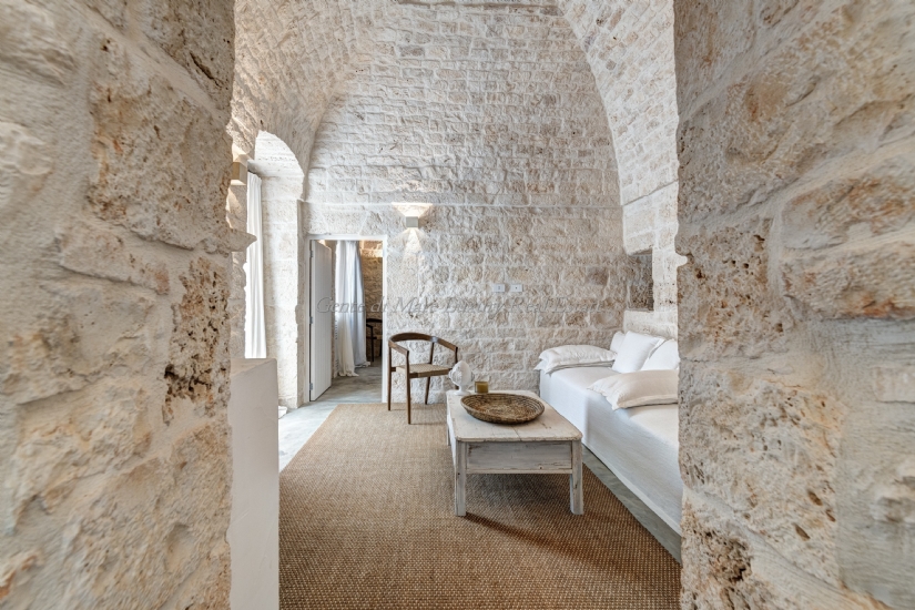 The location, quiet and reserved, guarantees absolute privacy, while being a short distance from Ostuni, the ‘White City’ (only 5 minutes by car), and from other enchanting places in the Itria Valley, such as Martina Franca (20 minutes) and Cisternino (15 minutes). The sea can be reached in less than 30 minutes.