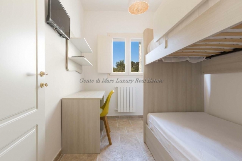 Outside, the private Mediterranean garden welcomes guests with a fully equipped dining area with tables, benches, and a barbecue—perfect for dining under the stars. The undisputed star of the property is the splendid swimming pool, surrounded by olive trees and dry-stone walls, offering the perfect retreat to relax in the tranquility of nature.