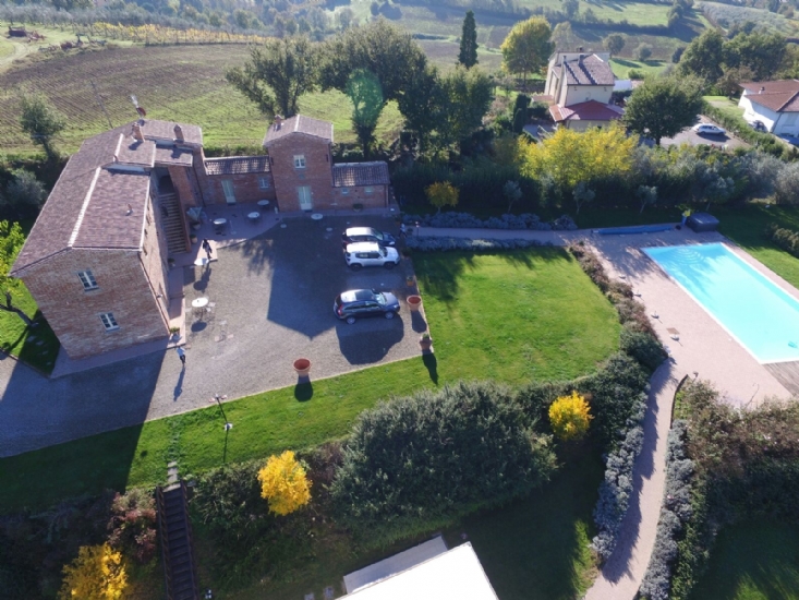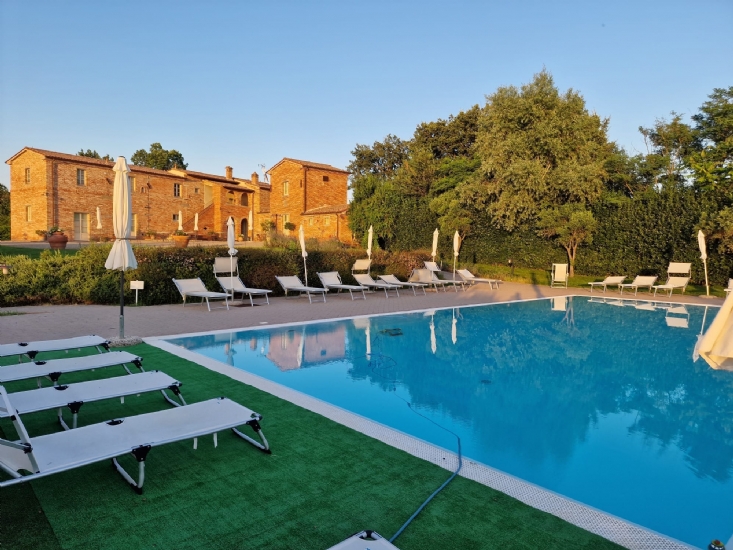 The farmhouse is surrounded by 6 hectares of private land, where green fields and breathtaking views create an ideal setting for those seeking the ultimate in relaxation. The central landmark of the property is the 7x14-metre swimming pool, with a large solarium offering incomparable views of the surrounding hills and the picturesque village. A few steps away from the pool, a Jacuzzi completes the offer of comfort, offering guests a corner of absolute well-being. The property is equipped with a private car park, guaranteeing maximum comfort and privacy.