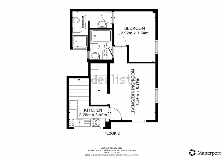 -Kitchen, living area with sofa bed, double bedroom, two bathrooms