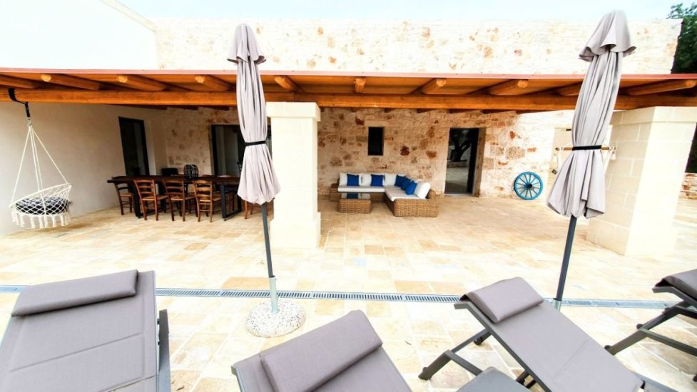 La proprietà si sviluppa con eleganza in due corpi indipendenti, connessi visivamente dalla splendida piscina panoramica di 40 mq che ne diventa cuore conviviale e scenografico: da un lato, una villa contemporanea completamente ristrutturata con materiali della tradizione – tufo, pietra naturale, grandi vetrate – e dall’altro, un autentico trullo pugliese, conservato con rispetto filologico e charme rurale. Ogni edificio racconta una storia diversa, ma con lo stesso spirito: il lusso discreto di chi sa riconoscere la bellezza senza tempo.