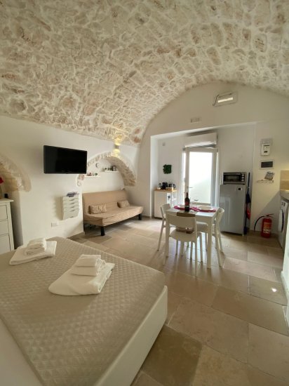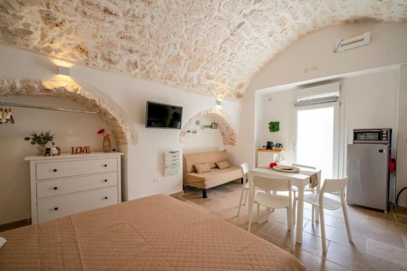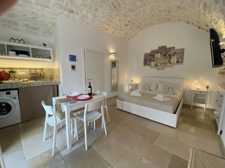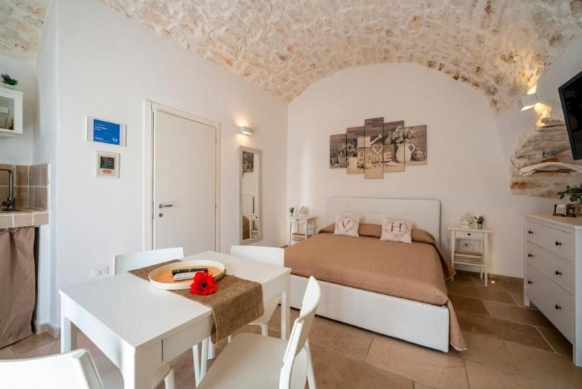 Nel cuore della zona ottocentesca di Ostuni, a pochi passi dalla sua iconica città vecchia e dai suoi vicoli imbiancati a calce, si apre il portale discreto di Dimora Antica Ostuni — un raffinato monolocale in pietra, dove passato e presente si intrecciano in perfetto equilibrio. In questo angolo intimo e senza tempo, ogni dettaglio è stato curato per offrire un’esperienza abitativa dal sapore autentico e contemporaneo.