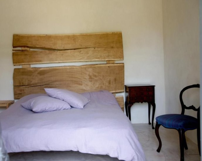 The villa is arranged on a ground floor and panoramic terrace, with a total surface area of approximately 215 sqm, and is fully furnished. Access is through a spacious portico with floor-to-ceiling glass windows, leading into a bright and scenic liveable veranda. The independent eat-in kitchen is a bespoke space, featuring a custom-made local resin cooktop, complete with furnishings and appliances. The two separate living areas, both with fireplaces, open onto the garden and the private swimming pool, while glass-block inserts in the ceiling create a poetic constellation of light, a distinctive design signature throughout the home.