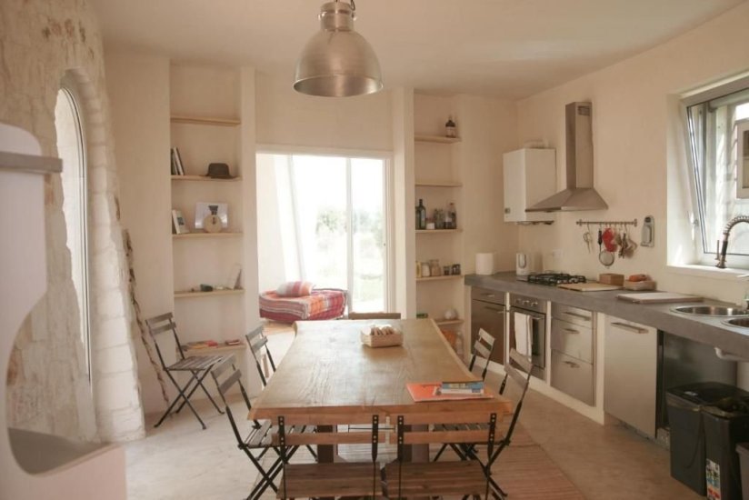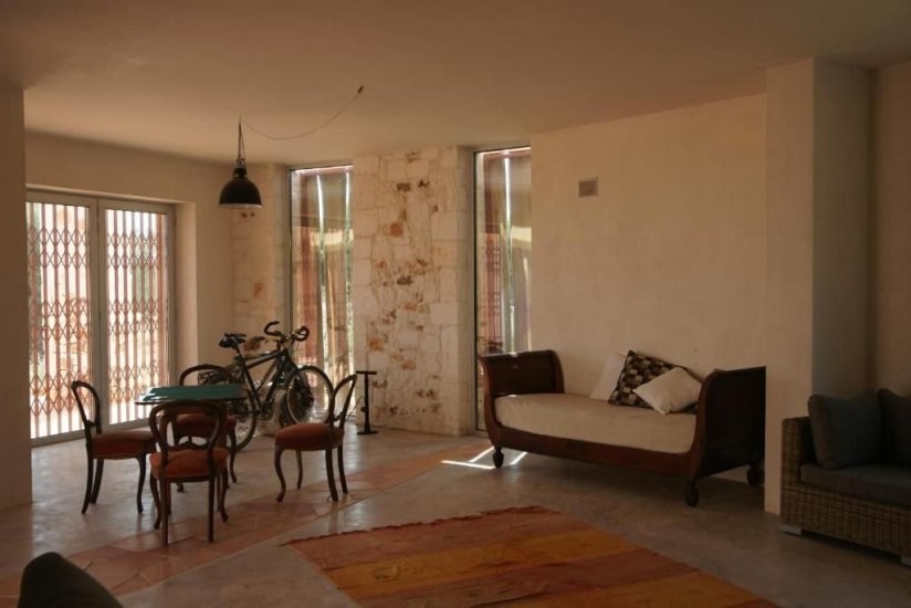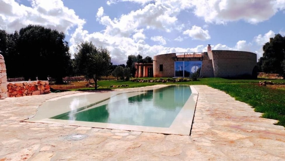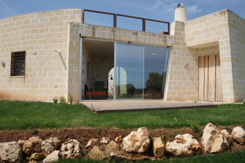 -Architecture inspired by the traditional trullo, with a circular open-air inner patio