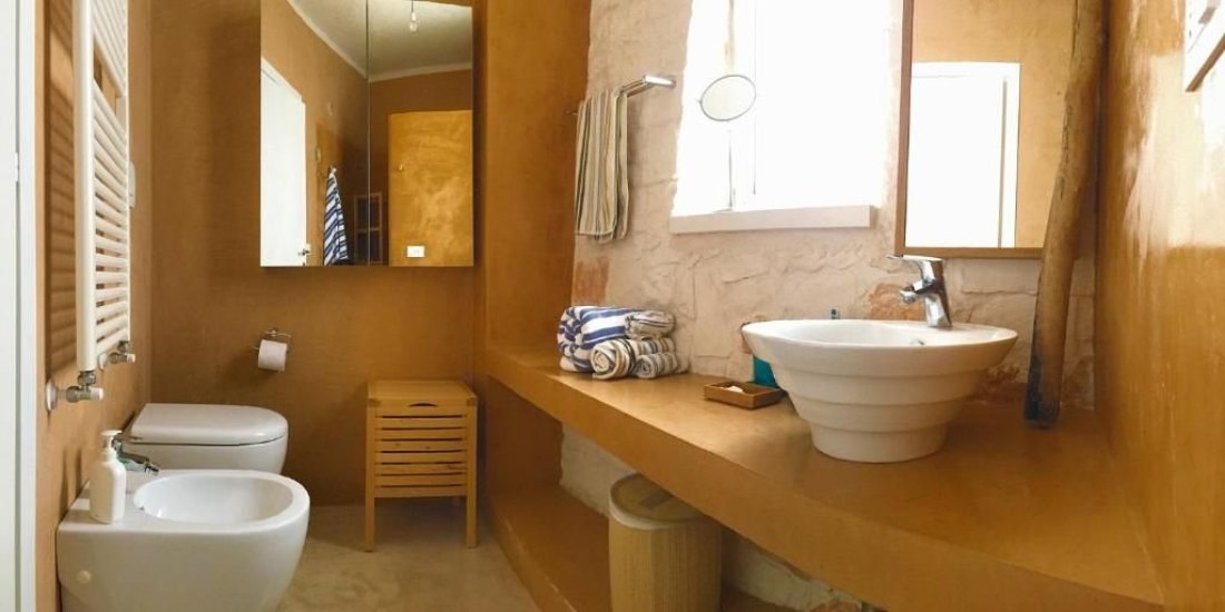 The building is a refined reinterpretation of the traditional Apulian trullo: a pure, enveloping circular form in which the rooms unfold along the perimeter, enclosing an open-air circular patio. Here, the dialogue between solid and void creates a striking play of positive and negative space, transforming the courtyard into a second outdoor living room, intimate and sheltered. The courtyard is conceived as an Arab garden, with an orange tree at its centre and greenery filtering the light, creating the perfect setting for dining and convivial moments even on the warmest days.