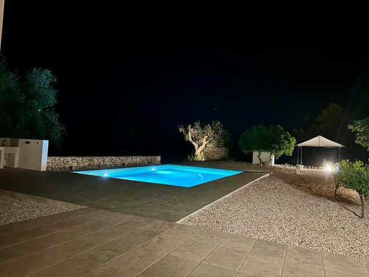 The outdoor spaces represent the true heart of the property. A private garden surrounded by centuries-old olive trees embraces a beautiful private swimming pool, complete with sun loungers and gazebo, creating an exclusive oasis where one can relax during the warmest hours of the day or enjoy the peaceful summer evenings under the starry Apulian sky. The land of approximately 17,000 sqm guarantees maximum privacy and offers further opportunities for enhancement.
