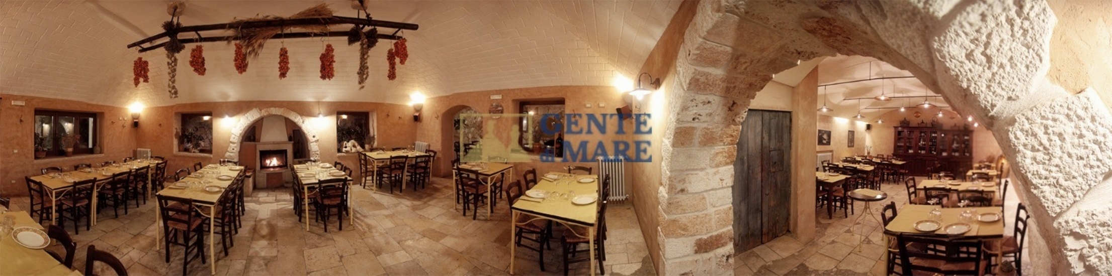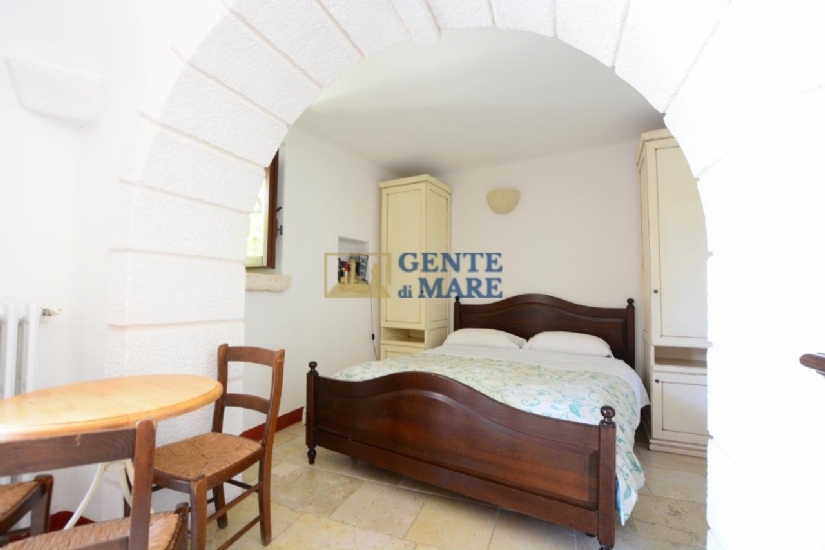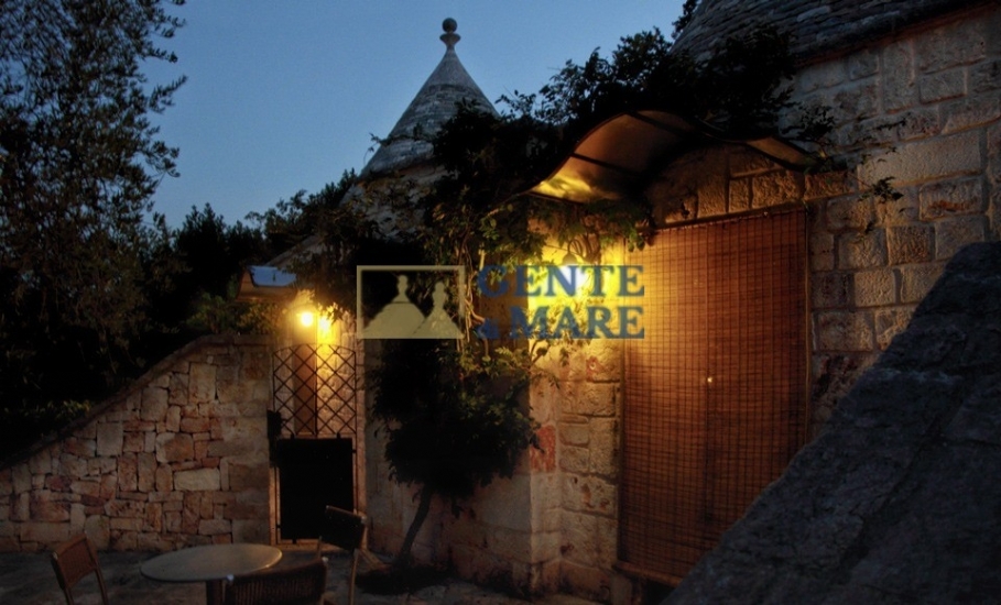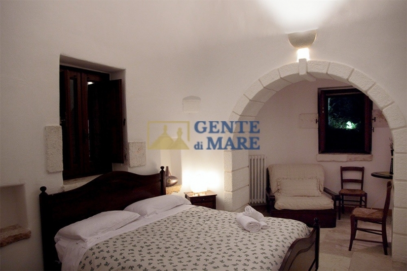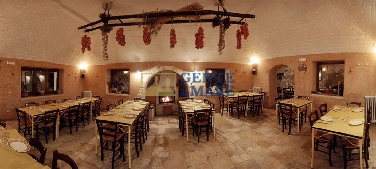 La struttura ospita due bellissimi trulli completamente indipendenti, ognuno con camera da letto e proprio bagno. Di fronte ai trulli alcuni gradini tra muri a secco conducono all'aia circondata da un suggestivo anfiteatro in pietra e servito da servizi igienici dedicati (dalla superficie di circa 7mq), mentre accanto si giunge in un'antica lamia finemente ristrutturata con materiali naturali e pietra volta a stella con al suo interno un ampio locale adibito ad attività di ristorazione, e fornito di comodo bagno. Dal retro si accede alla cucina professionalmente attrezzata e al forno, l’area è meravigliosamente dotata di veranda esterna e ricopre una superficie totale di circa 157mq.
