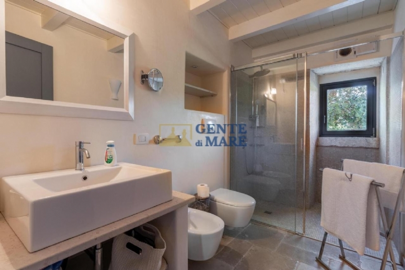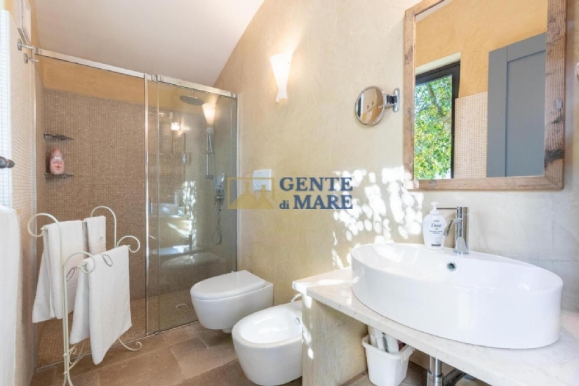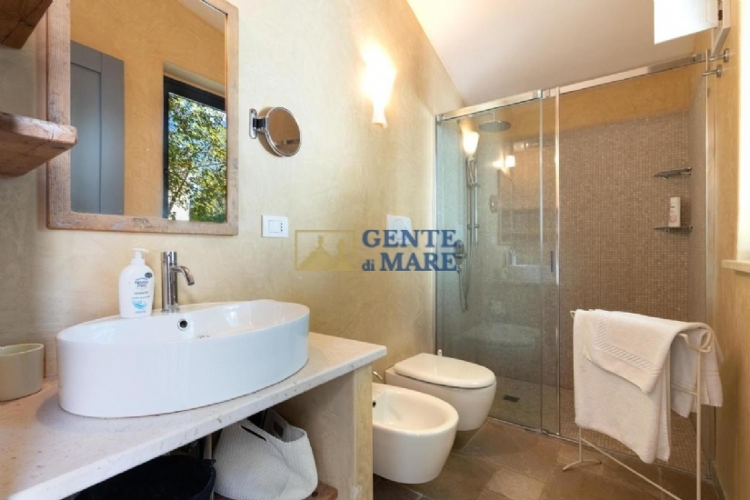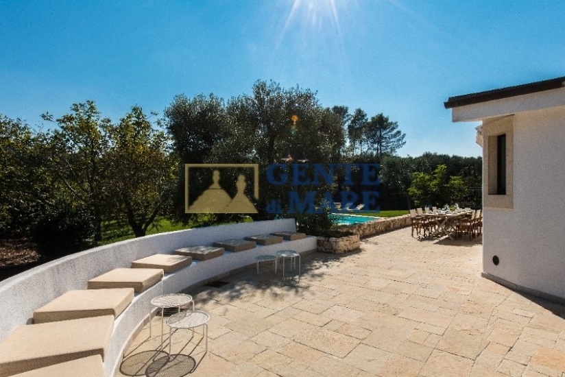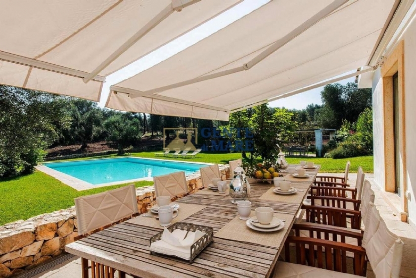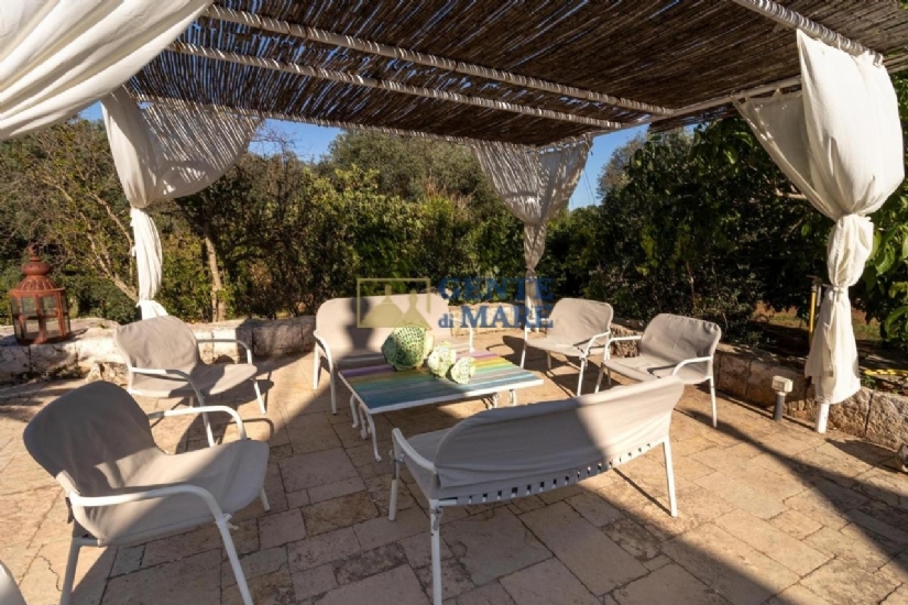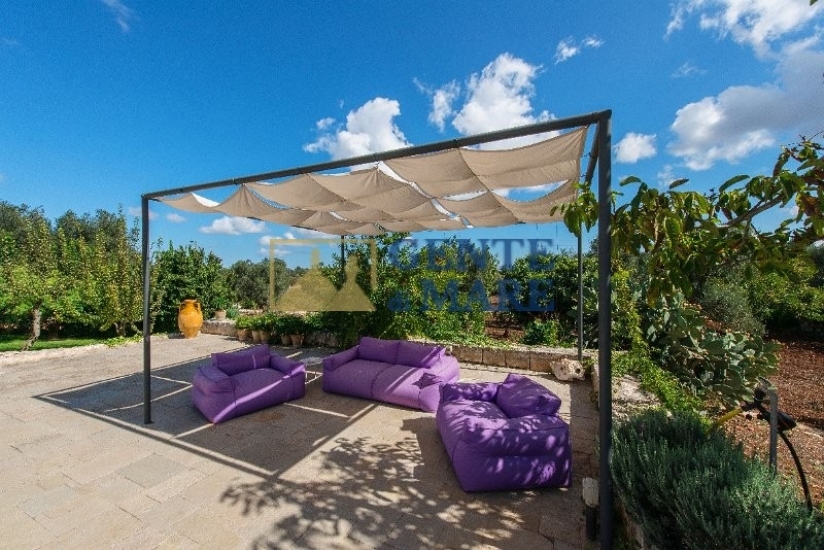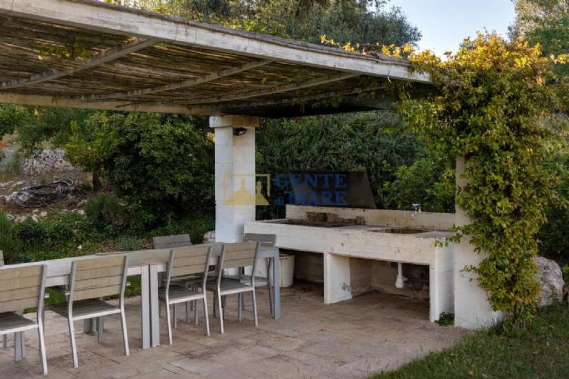 GLI ESTERNI: esternamente, ti innamorerai subito del paesaggio circostante grazie ai circa due ettari di terreno in zona collinare, terreno totalmente recintato con muretti a secco che delimitano dunque la proprietà. A tua disposizione un rigoglioso spazio verde con piante sempreverdi e bellissimi e colorati fiori, a completare questo dipinto ci sono poi circa 120 alberi d’ulivo secolari, spazi pavimentati ed un’ampia area parcheggio con posti auto all’ombra mentre l’accesso avviene tramite un cancello automatico. In rispetto dell’antica tradizione della regione, ammirerai anche una caratteristica “aia” che si erge in posizione panoramica e offre un bel pergolato con divano in muratura ed una zona pranzo dove poter organizzare pranzi e cene all’aperto. A rendere ancora più affascinante quest’area esterna, vi è la meravigliosa piscina di 15mx8 che presenta una profondità di circa 2m. A circondarla vi è inoltre una zona solarium con lettini, un gazebo con acquaio ed un angolo barbecue.