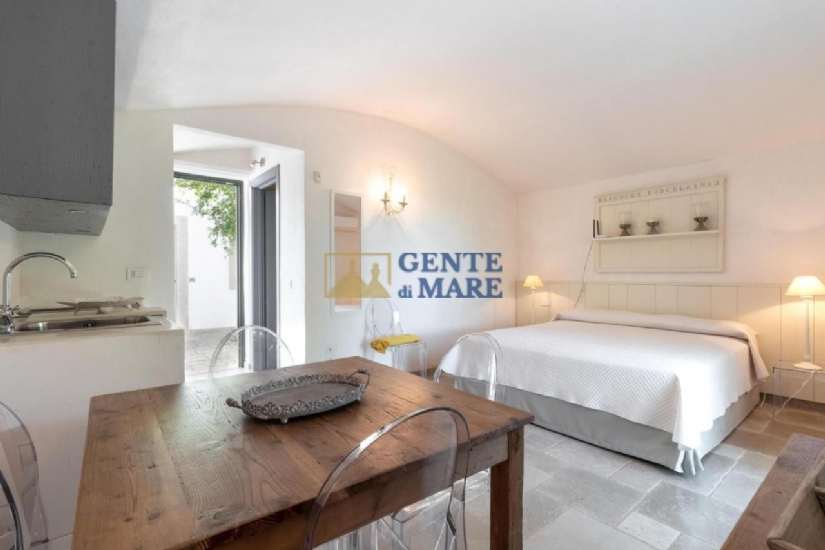 - La quarta unità è composta da un trullo a più coni adibito a zona giorno con un divano letto e un letto singolo. Vi è una zona cottura con frigo, collegato a una grande camera matrimoniale con bagno con doccia.