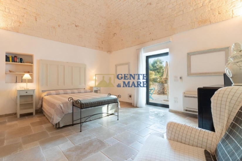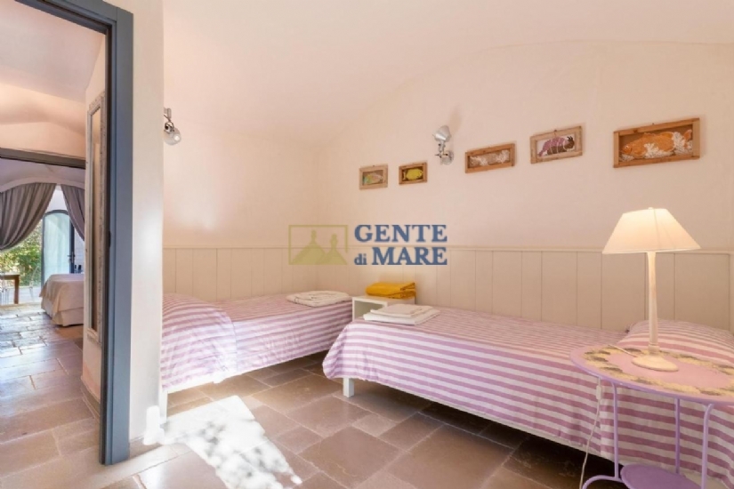 GLI INTERNI: la struttura mette a tua disposizione una grande lamia di circa 70mq con luminosa cucina, spazioso soggiorno, salotti, un bagno ed un antibagno, qui troverai inoltre un’uscita diretta sul giardino. Vi sono poi quattro belle suite nei suggestivi trulli, tutte indipendenti ed infine vi è una quinta camera da letto con bagno.